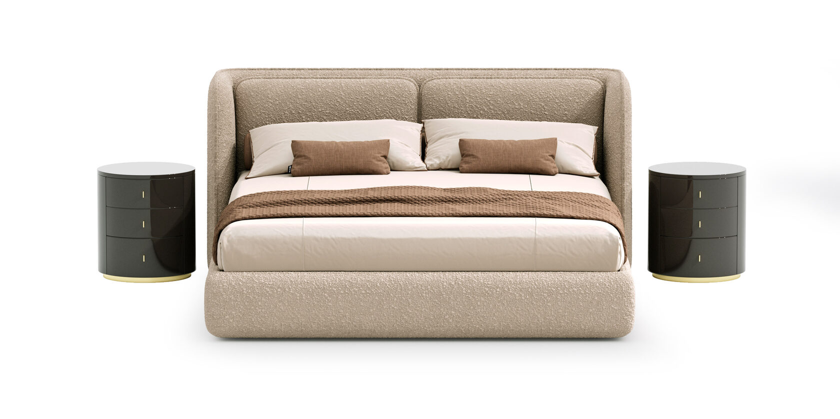 Shell — это воплощение уюта и защищённости. Её форма словно повторяет природный силуэт ракушки: мягкая, обволакивающая, приглашающая укрыться и отдохнуть. Изголовье охватывает с двух сторон, создавая ощущение камерности, тепла и комфорта. Эта кровать как личное пространство внутри пространства — там, где можно быть собой и чувствовать себя в безопасности.